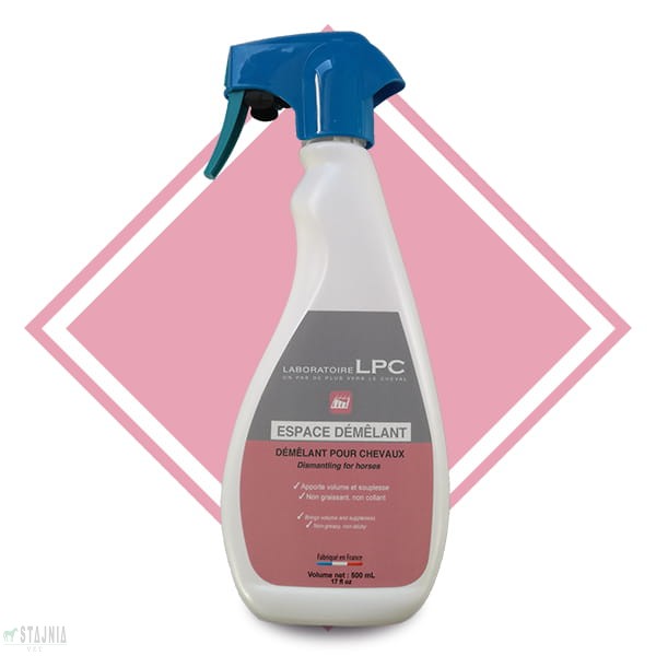 Spray do rozczesywania grzywy i ogona. Zapewnia objętość i elastyczność. Nie jest tłusty i nie klei się. Formuła, która zapewni elastyczność i blask końskim włosom. Ułatwia rozczesywanie. Wzbogacony w aloes odżywia i nawilża, zachowując naturalne pH końskiej skóry.