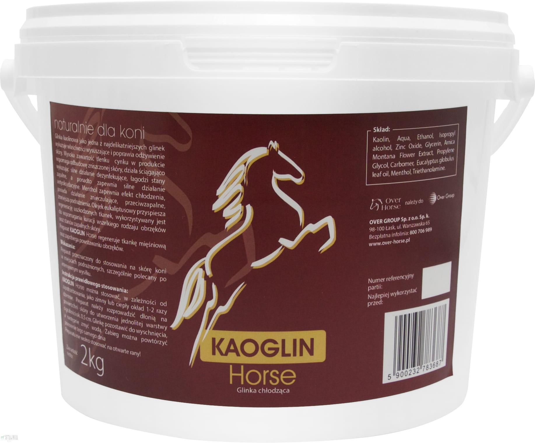 Glinka kaolinowa jako jedna z najdelikatniejszych glinek wykazuje właściwości wysuszające i poprawia odżywienie skóry. Wysoka zawartość tlenku cynku w produkcie wspomaga odbudowę zniszczonej skóry, działa ściągająco wykazując silne działanie dezynfekujące, łagodzi stany zapalne, a ponadto zapewnia silne działanie antyoksydacyjne. Menthol zapewnia efekt chłodzenia, posiada działanie znieczulające, przeciwzapalne, zmniejsza podrażnienia. Olejek eukaliptusowy przyspiesza regenerację uszkodzonych tkanek, wspomaga kurację obrzęków oraz stanów zapalnych skóry. Preparat KAOGLIN Horse regeneruje tkankę mięśniową oraz zapobiega powstawaniu obrzęków.